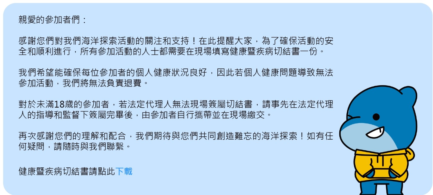 **備註:如未滿110公分欲參加活動,煩請來電詢問(業務部專線:03-8123168)**